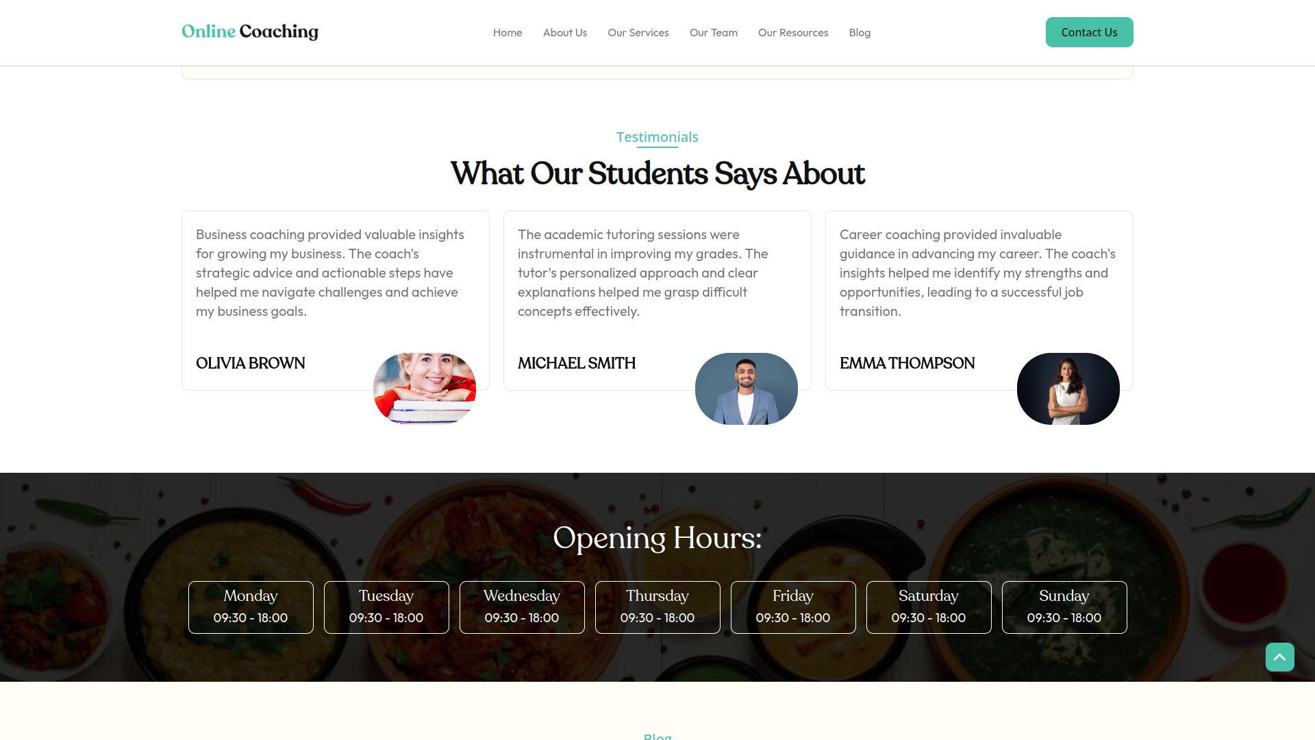 Let your passion for helping others and your expertise shine through! The Online Coaching Theme allows you to showcase your qualifications, including relevant certifications or training you've received. Feature testimonials from past clients praising your coaching style, ability to create personalized plans, and commitment to their success. Consider including blog posts with valuable insights related to your coaching niche, offering coaching tips, or addressing common challenges your clients face.