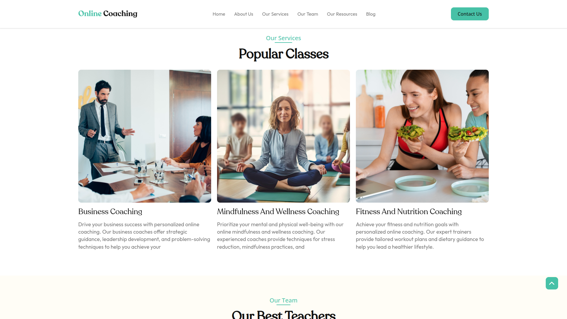 Let your passion for helping others and your expertise shine through! The Online Coaching Theme allows you to showcase your qualifications, including relevant certifications or training you've received. Feature testimonials from past clients praising your coaching style, ability to create personalized plans, and commitment to their success. Consider including blog posts with valuable insights related to your coaching niche, offering coaching tips, or addressing common challenges your clients face.
